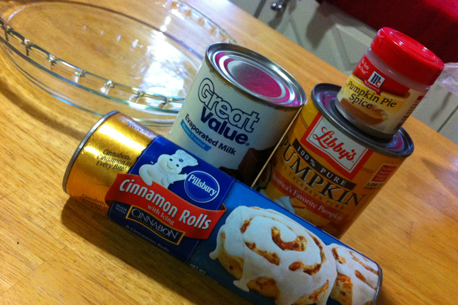 My students happened to be having a holiday pot luck, so I took the pie to them to test. They said they liked it. And while it came out okay, I’m not sure I really care for the cinnamon roll crust on a pumpkin pie. However you can be the judge and try it for yourself.