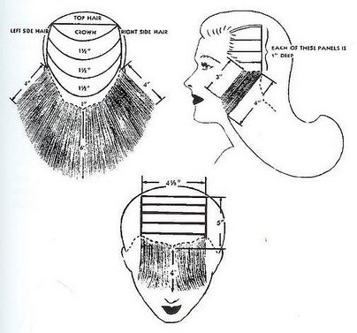 The “Middy Plus” was the longer of the cuts, with the back at 4-1/2 inches. This cut was popular among film stars such as Heddy Lammar. Because of its extra length the hair could easily be styled in an up-do.